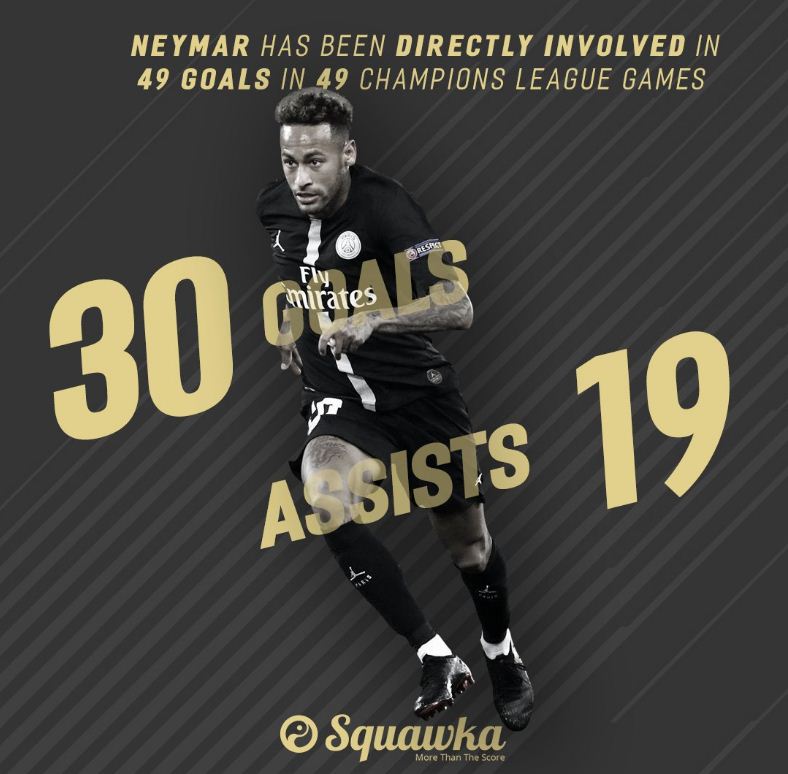 وسجل نيمار ثلاثية للبياسجي في الدقائق 20 و22 و81، رافعًا رصيده لـ30 هدفًا في 6 مواسم في التشامبيونزليغ.